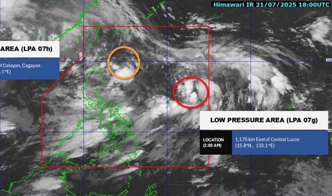 Tin bão, áp thấp mới nhất ngày 22.7 của Cơ quan Thiên văn, Địa Vật lý và Khí quyển Philippines (PAGASA) cho biết, 1 trong 2 áp thấp đang được theo dõi trong khu vực dự báo của Philippines (PAR) có khả năng cao phát triển thành áp thấp nhiệt đới trước hoặc trong ngày 23.7.