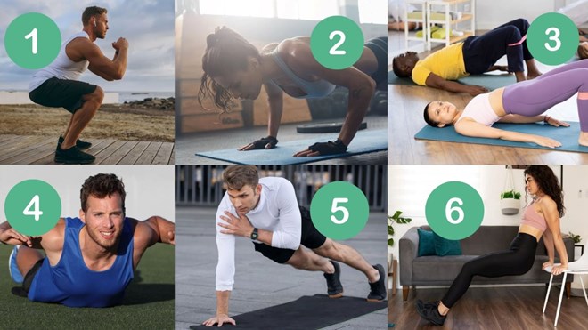 Bài tập không cần dụng cụ để xây dựng cơ bắp, tăng sức mạnh. Đồ họa: Thanh Thanh