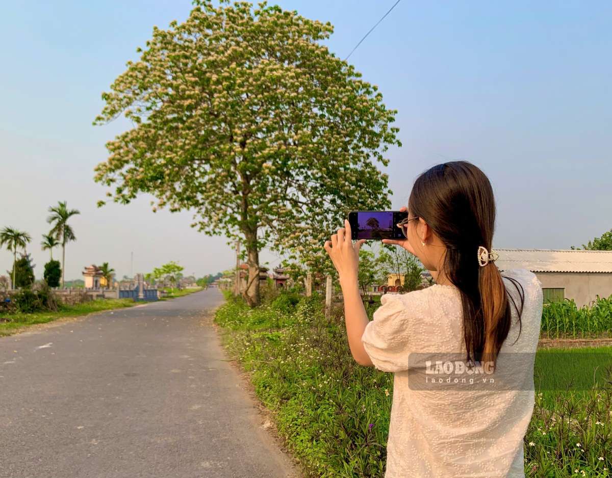Nhiều bạn trẻ thích thú lưu lại hình ảnh đẹp bên cây ho bún.