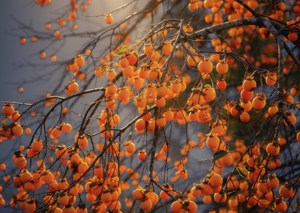 Mùa cây hồng chín đỏ kéo dài từ khoảng tháng 11, 12 đến tháng 2 năm sau. Khi mùa đông đến, cây sẽ rụng hết lá, trên cây chỉ còn lại những cành trĩu quả. Ảnh: Nguyễn Hữu Thịnh
