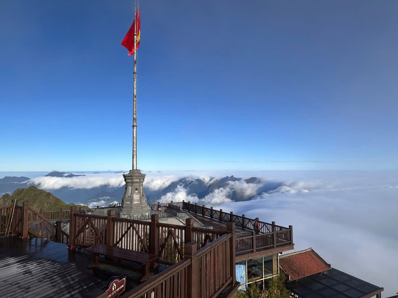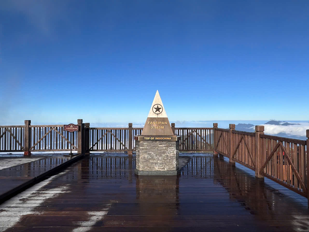 Sáng sớm và chiều tối 21.11, nhiệt độ khu vực núi Fansipan ở mức thấp, nhiều thời điểm -3 độ C. Ảnh hưởng của không khí lạnh đầu đông khiến sương muối phủ một lớp trắng mỏng trên đường đi, bậc đá lên xuống, sàn gỗ để khách du lịch ngắm mây.