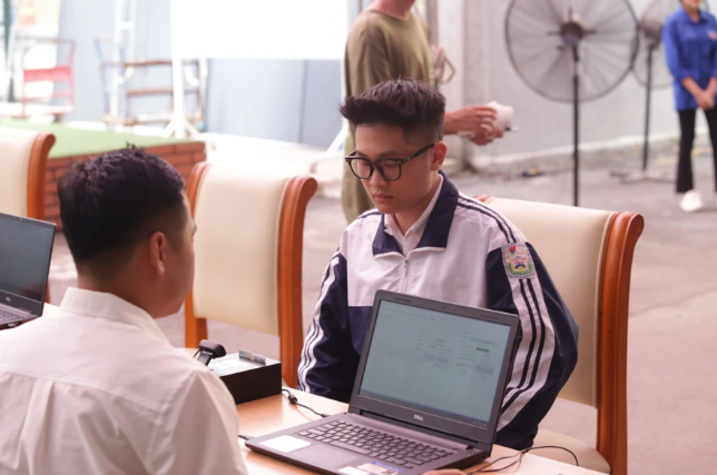 Thí sinh tham dự kỳ thi V-SAT của Học viện Ngân hàng năm 2024. Ảnh NTCC. |