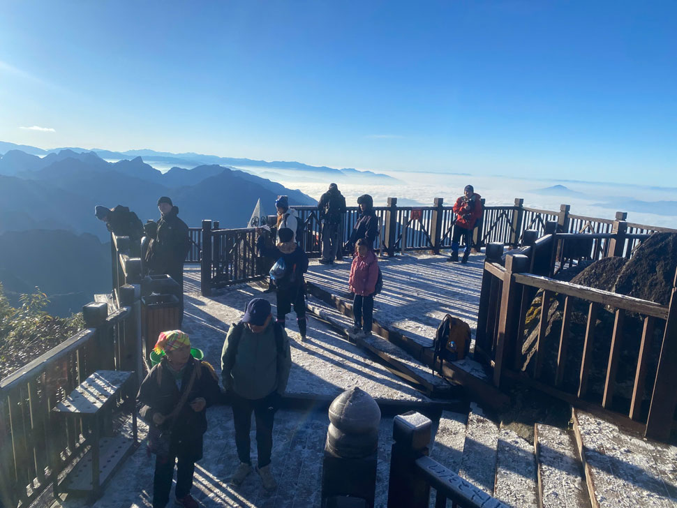Khách thích thú check in đỉnh Fansipan phủ băng tuyết trắng như bông