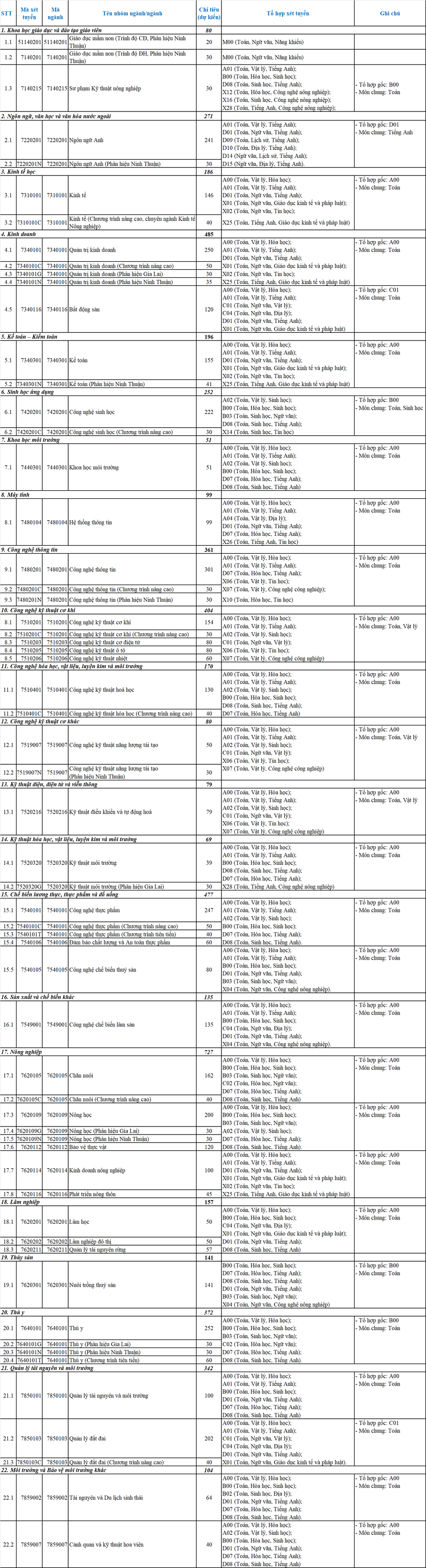 Chỉ tiêu tuyển sinh (dự kiến) của Trường Đại học Nông Lâm TPHCM. Ảnh: NLU.