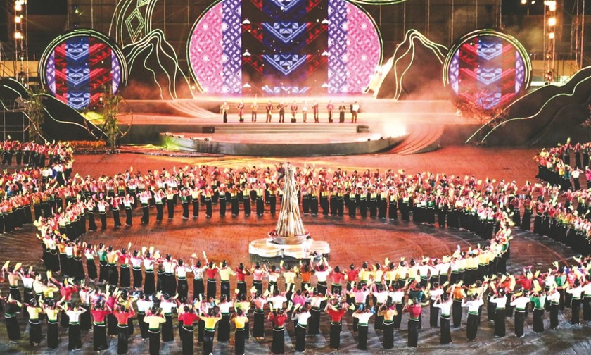 Vòng xòe với 2022 người tham gia trong chương trình “Xòe Thái - Tinh hoa miền di sản” Yên Bái. |