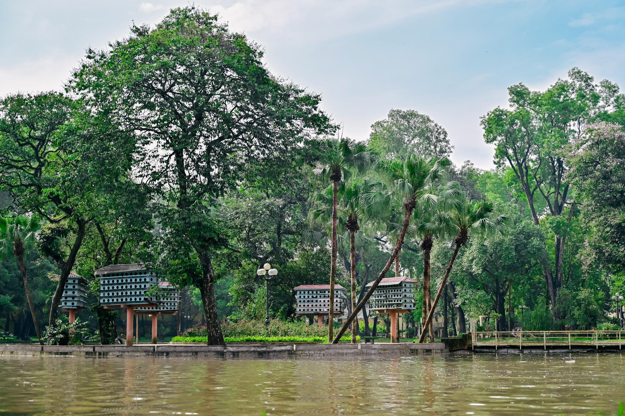 Là một trong những công trình xanh lớn nhất Hà Nội, công viên Thống Nhất có diện tích lên tới 50 ha với 2 đảo nổi Thống Nhất và Hòa Bình, cùng nằm trên Hồ Bảy Mẫu rộng 25 ha. Kể từ khi được khánh thành từ năm 1961 cho tới nay, công viên luôn là là lựa chọn lý tưởng để người dân tới thư giãn, vui chơi, luyện tập thể dục thể thao. Ảnh: Chu Văn Quân.