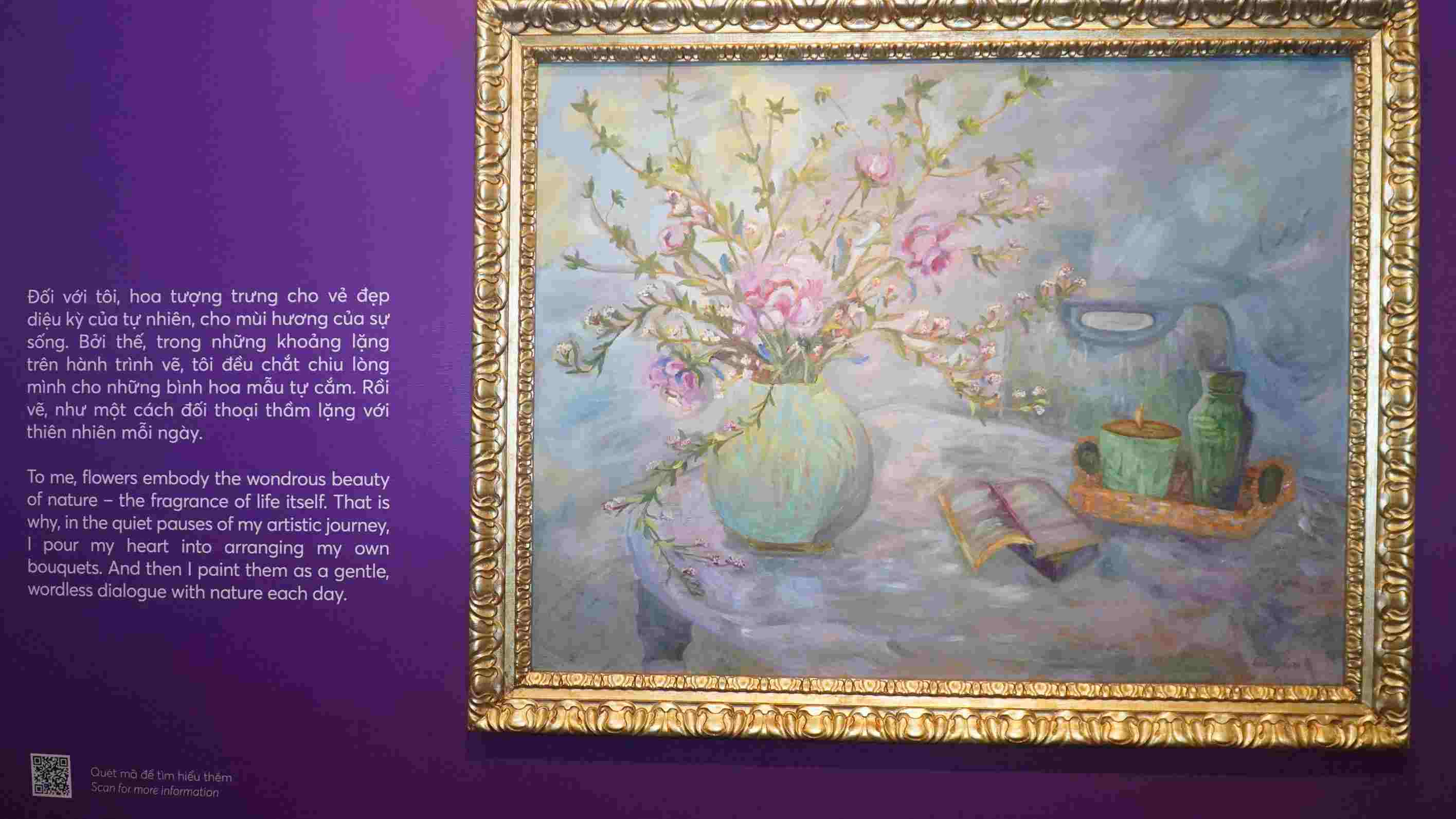 Không gian triển lãm Mộng giữa chiều hoa mang đến cho nhiều du khách cảm giác lắng lại giữa nhịp sống đô thị vội vã. Khi bước qua từng bức tranh, người xem dễ dàng cảm nhận được sự dịu dàng trong màu sắc, sự gần gũi của hình ảnh người phụ nữ, thiên nhiên và tổ ấm, như chạm vào những ký ức quen thuộc của chính mình.