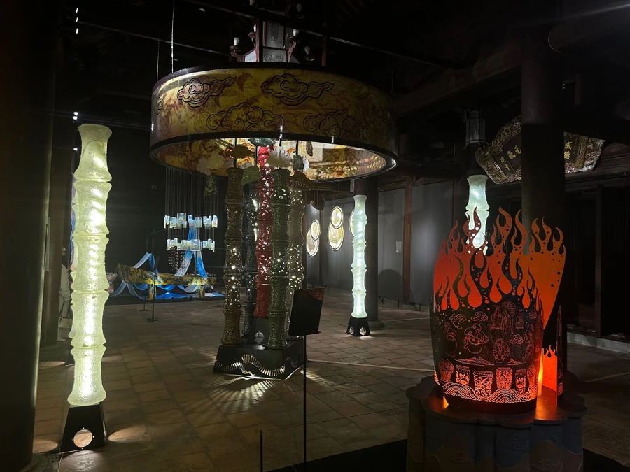 Trong không gian cổ kính, trầm ấm của Văn Miếu - Quốc Tử Giám, ánh sáng từ “Thiên Quang” không chỉ giúp soi chiếu đến ngọn nguồn gốc tích lịch sử các nghề mà còn làm cho tác phẩm trở nên nổi bật, giống như cách chúng ta soi chiếu một vật thể nhỏ dưới ống kính phóng đại.